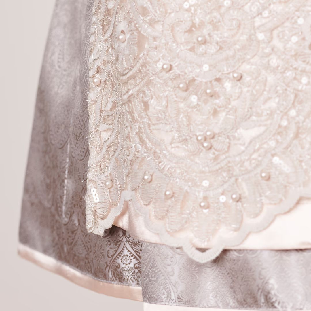 Bestaande uit een jurk met ingewikkelde patronen, aangevuld met een bijpassend schort en blouse, is dit ensemble een complete traditionele jurk die charme en authenticiteit uitstraalt. De Gene jurk is ideaal voor culturele gelegenheden, festivals of elke andere gelegenheid waarbij je erfgoed in stijl wilt vieren. Het is zorgvuldig vervaardigd om de schoonheid van traditie in elke steek te laten zien. Met zijn aandacht voor detail en kwaliteit is deze jurk niet zomaar een outfit, maar een stukje cultureel vakmanschap dat is ontworpen om een statement te maken.
