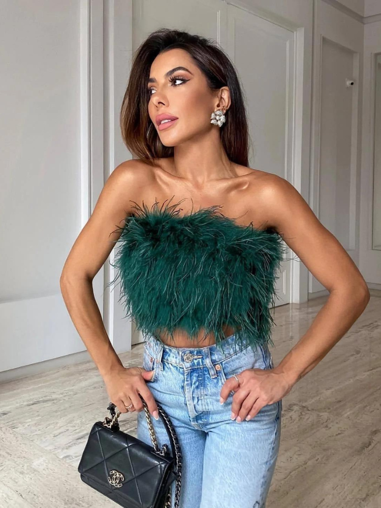 De Hayley tube top heeft imitatieveren die een vleugje glamour en verfijning toevoegen. Het strapless ontwerp creëert een chique en moderne look die perfect is voor uitgaan, voor speciale gelegenheden of voor een chique touch in het dagelijks leven. Deze top is gemaakt van hoogwaardige materialen en biedt zowel comfort als duurzaamheid, zodat je je net zo fantastisch voelt als je eruitziet.