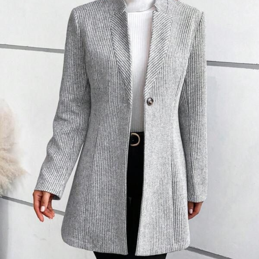 Maak je garderobe compleet met deze Luxueuze jas, die perfect is om een elegante touch aan elke outfit te geven. De getailleerde snit en het hoogwaardige materiaal zorgen voor een geraffineerde look en bieden warmte en comfort op frisse dagen. Of je nu naar kantoor gaat of een avondje uit, dit veelzijdige jack voegt tijdloze elegantie toe aan je stijl.