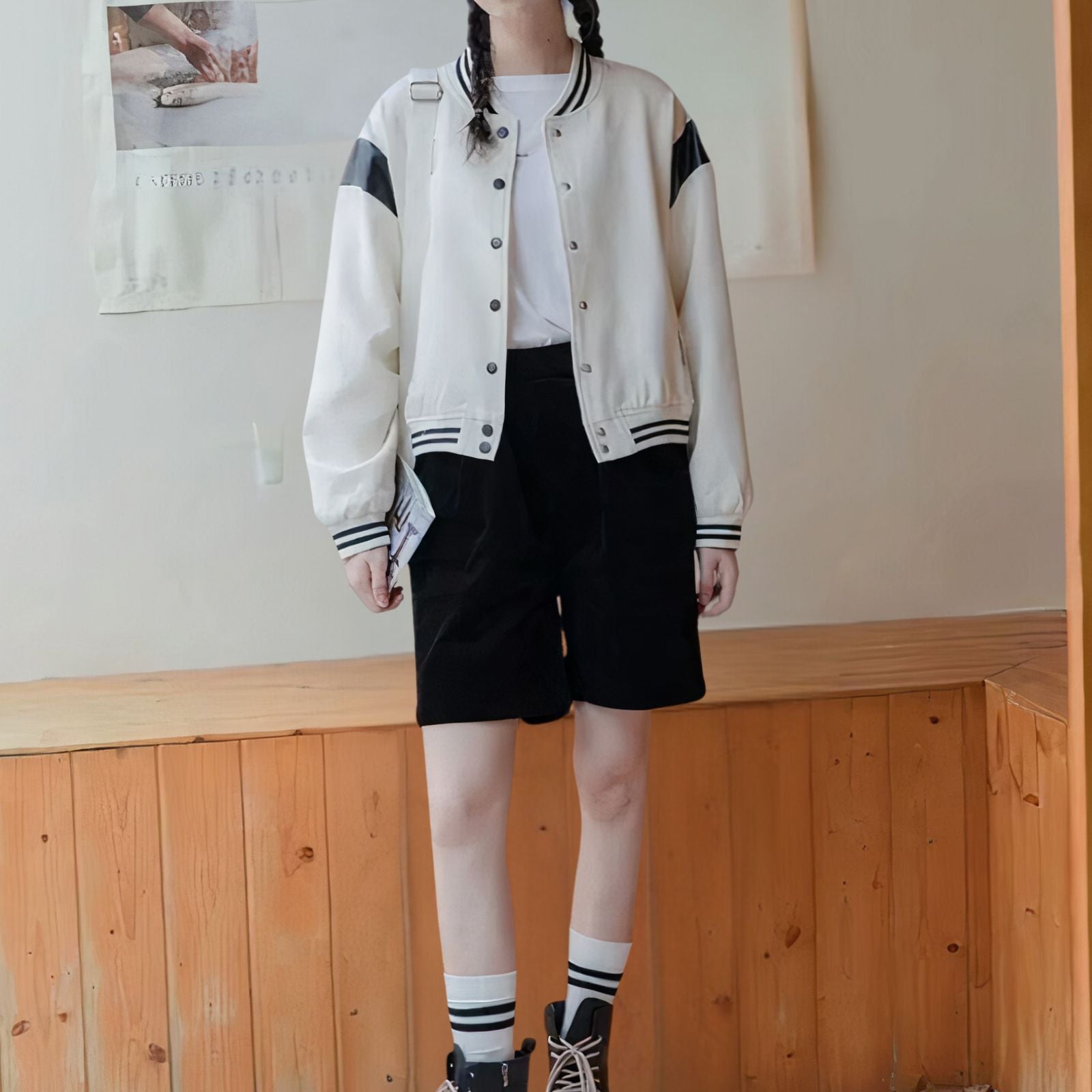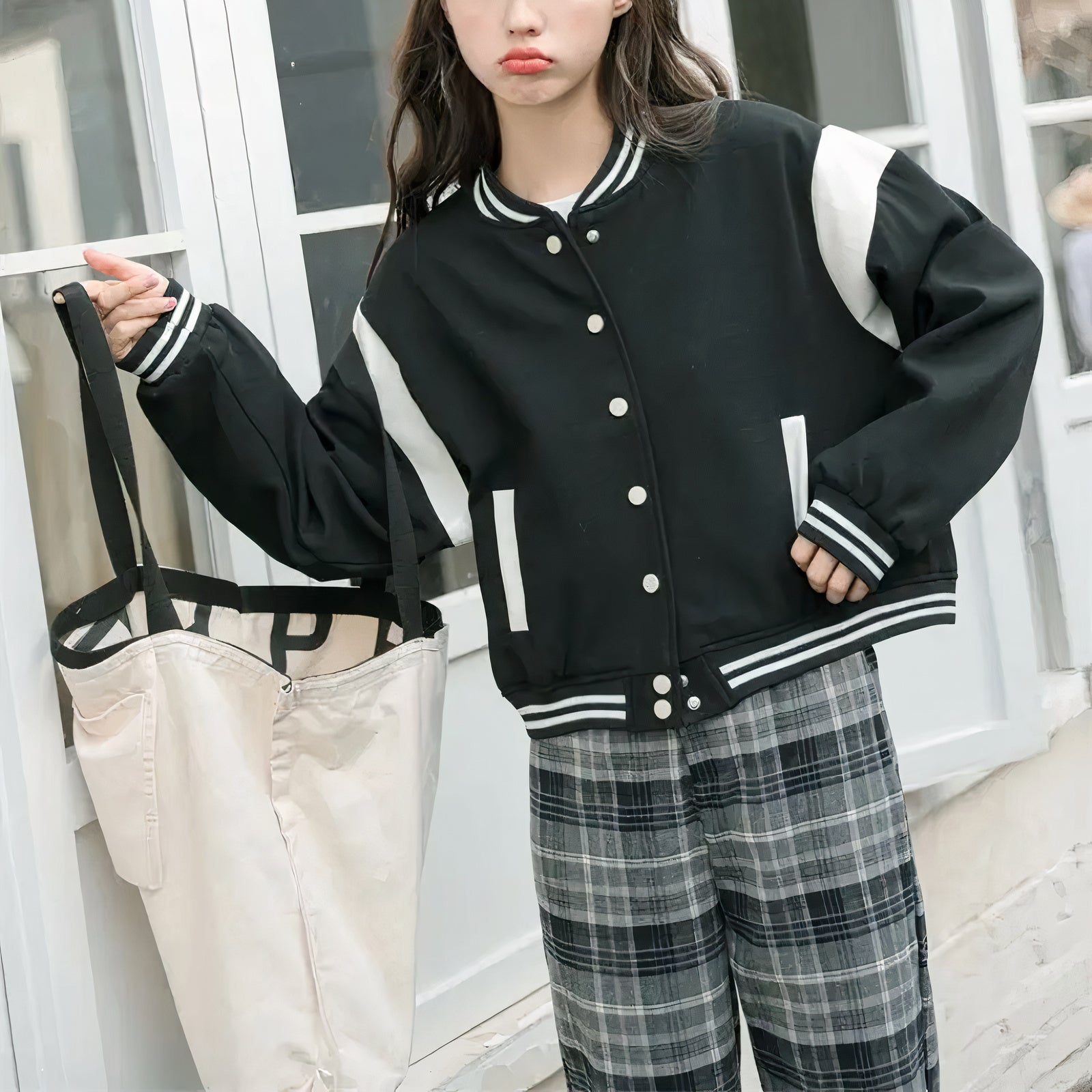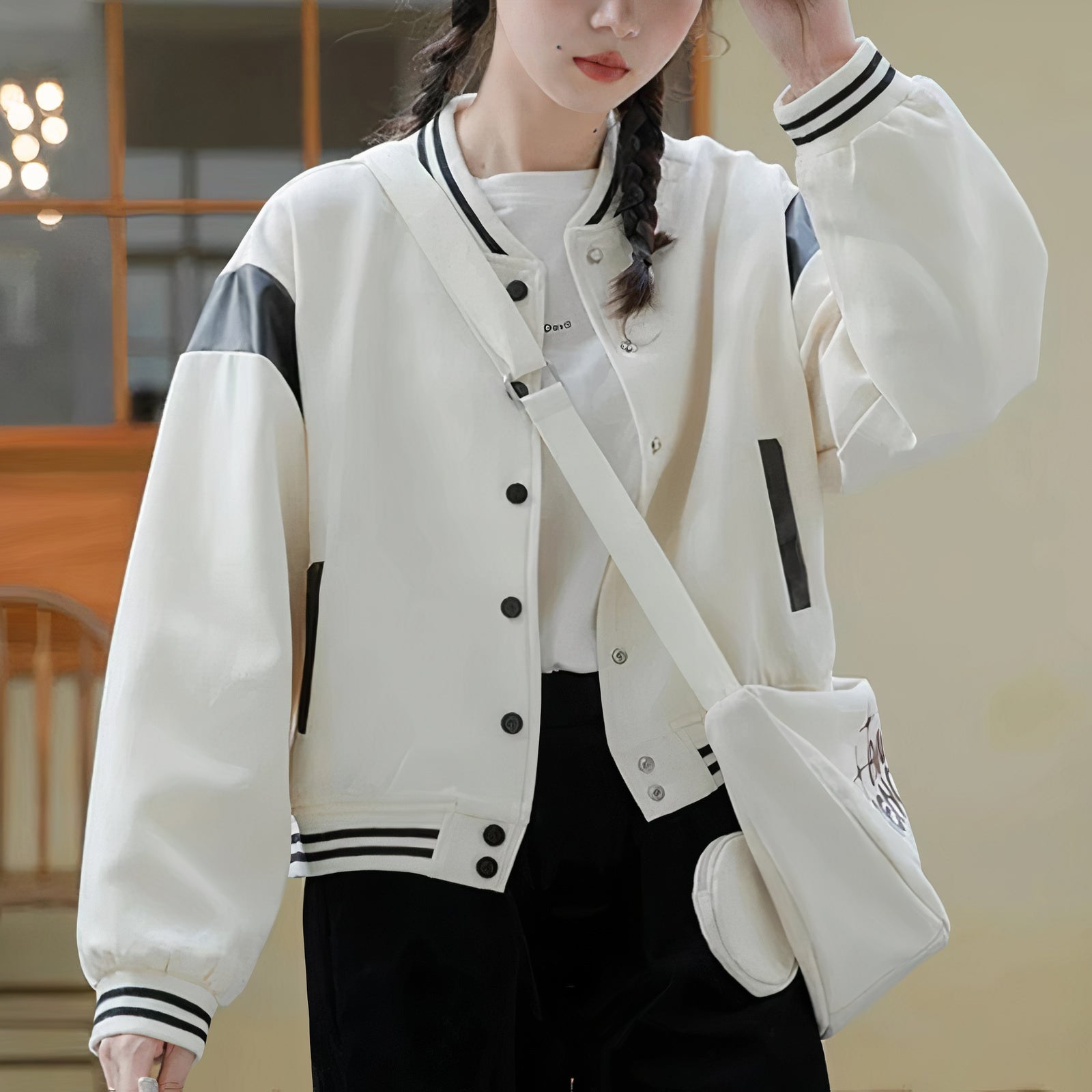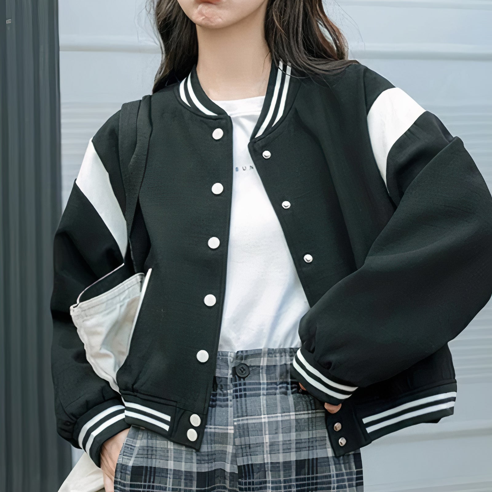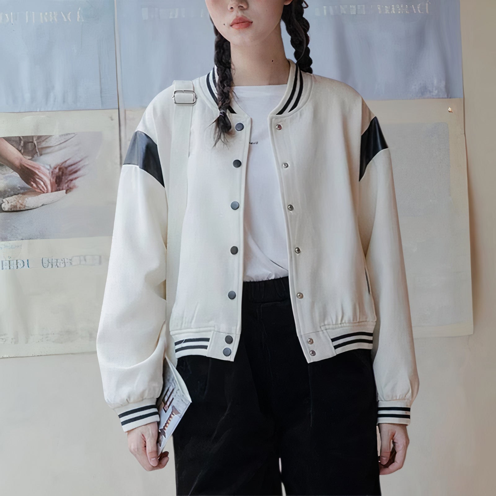 Stap terug in de tijd met het Retro Bomberjas Vrouwen - Jutta, een perfecte mix van klassieke varsity-stijl en hedendaags comfort. Met iconische gestreepte manchetten en een drukknoopsluiting is dit jack zowel praktisch als modieus en biedt het een goede pasvorm die ideaal is voor dagelijks gebruik. Het is gemaakt van duurzame materialen en belooft langdurig comfort en stijl. Het tijdloze ontwerp maakt het een veelzijdig stuk, dat gemakkelijk te combineren is met alles van jeans tot casual jurken voor een chique, relaxte look.