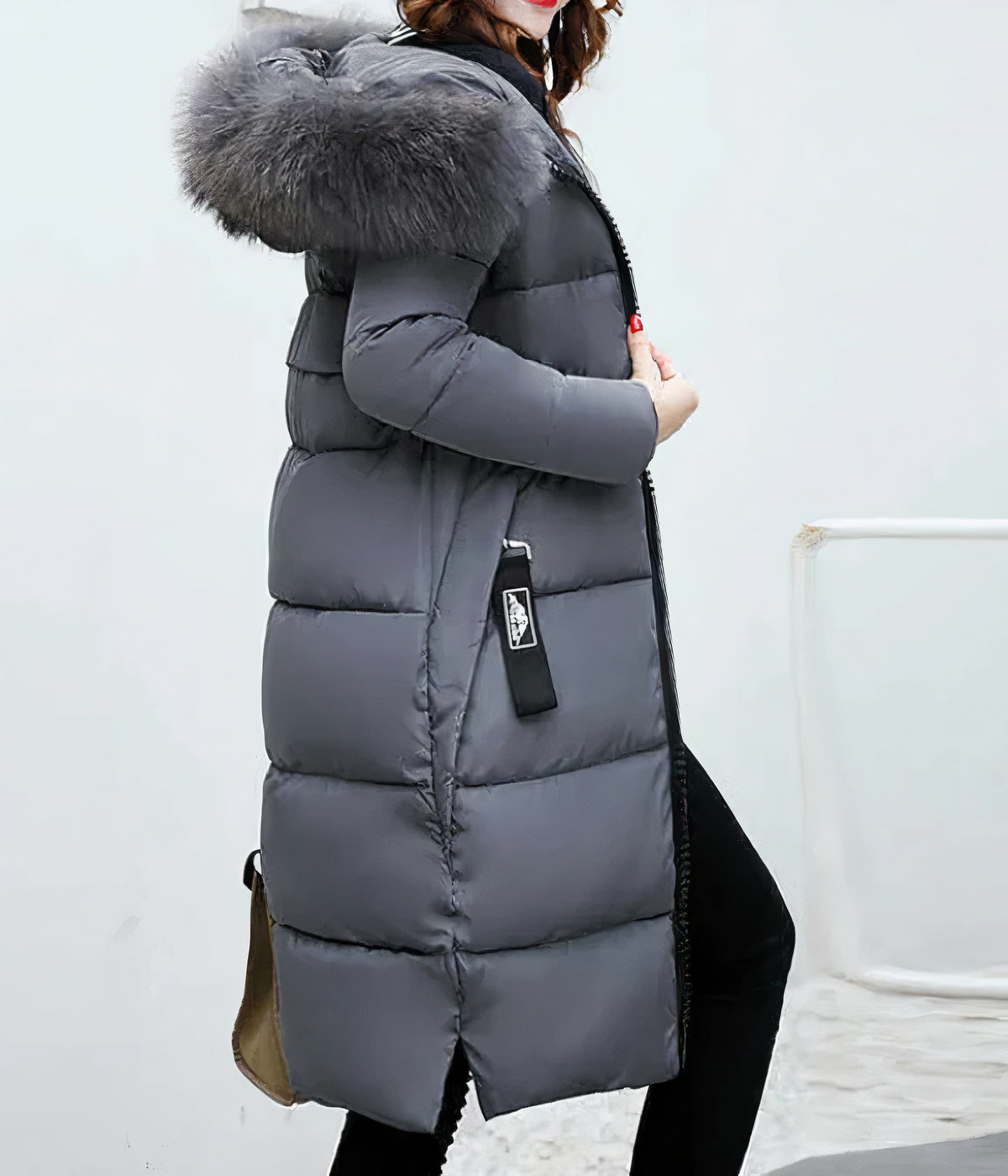 Geef je winterlook een nieuwe touch met de lange jas met bontkraag - Kora, versierd met een pluche bontkraag. De jas is ontworpen voor iedereen die van elegantie en warmte houdt. Het elegante silhouet houdt je niet alleen warm, maar verfraait ook je outfit en maakt hem perfect voor elke gelegenheid - van casual uitjes tot formele evenementen. De luxueuze bontkraag voegt een vleugje weelde toe en zorgt ervoor dat je opvalt in elke menigte. Ervaar dit seizoen de perfecte mix van stijl en comfort met een jas die staat voor verfijnde mode.